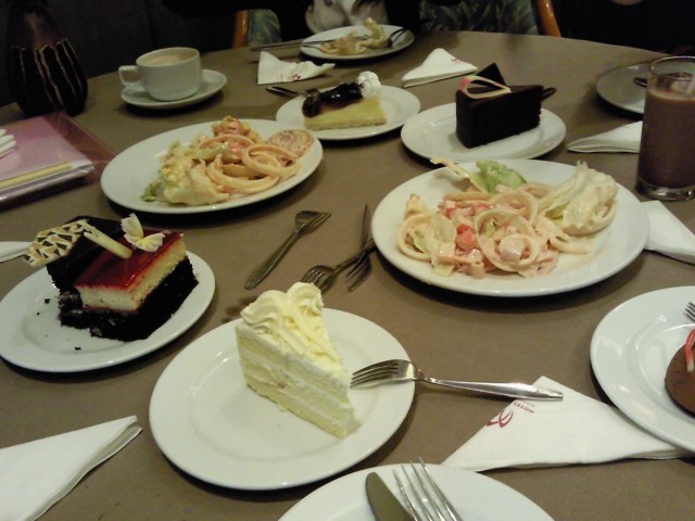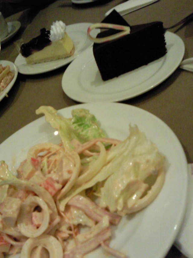 เค้กบุฟเฟต์ โรงแรมโนโวเทลชั้น 1 หัวละ 235 บาท มีเวลาจำกัดสองชั่วโมง ต้องทานอย่างน้อยให้เกินครึ่งหนึ่งต่อชิ้น อย่าเหลือเยอะจนน่าเกลียดนะเค้กหน้าตาน่าทานมาก ดูมีดีไซน์ จัดสวย ชอบดีไซน์แบบนี้เป็นพิเศษ เป็นมูสช็อคโกแลต อร่อยมากมีอาหารพิเศษประจำวันด้วย รอบนี้เป็นสลัด มีหัวหอม ผักกาดแก้ว แฮม อร่อยมากจริงๆ อันนี้เค้าจะทำให้ ไม่สามารถไปหยิบมาคลุกน้ำสลัดเองได้นะเค้กส้ม อันนี้ส้มเหมือนวุ้นไปหน่อย เหมือนทานวุ้นสำเร็จรูปเค้กแอ๊ปเปิ้ล อร่อยดี รสแอ๊ปเปิ้ลไม่มากไม่น้อยไป ทาร์ตผลไม้อันจุ๋มจิ๋มน่ารัก ทานผลไม้แล้วสดชื่นเครื่องดื่มไปเลือกได้เองเลย นี่เป็นชานม รสชาติกลมกล่อมเข้มข้นดีมีขนมปังให้เลือกด้วย ให้เค้าอุ่นให้ แต่มันจะทำให้เรากินเค้กได้น้อยลง เลยกินไม่เยอะ…Read More