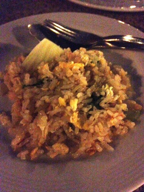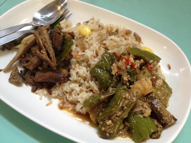 ร้านอาหารมังสวิรัติ มีขายพวกอาหารเวียดนามและข้าวแกง อยู่ข้างๆ ร้านสวนไผ่หน้าร้านจ้า กับข้าวเต็มไปหมดเลย มีทั้งข้าวเปล่ากับข้าวผัดด้วย ถ้าสั่งข้าวผัดราดกับสองอย่างก็ 40 เมนูแบบมังๆ ก็พวกเต้าหู้ ผักต่างๆ เห็ดจานนี้สั่งข้าวผัดราดก้านเห็ดคั่วสมุนไพรกับผัดมะเขือ นึกว่าเห็ดจะเหนียว แต่ไม่เลย กรุบๆ นุ่มๆ อร่อยมาก ส่วนมะเขือเผ็ดนิดเดียวพอมีรสชาติ มะเขือก็เขียวน่าทาน เนื้อนุ่มๆ ดี ตัวข้าวผัด มีเครื่องเป็นลูกบัวสีเหลืองๆ แครอท แล้วก็เห็ด ทุกอย่างแทบมีเห็ดเป็นส่วนประกอบนะเนี่ย 55 เม็ดข้าวจะเป็นแบบผสม สังเกตจากมีเม็ดข้าวที่มีสีออกน้ำตาลไม่เข้ากับชาวบ้านประปราย ข้าวเค้าหอมนุ่ม รสกลมกล่อมไม่ต้องปรุงเพิ่มเลยให้กับข้าวเยอะดีนะ ข้าวหมดแล้วแต่กับยังเหลือทุกที…Read More