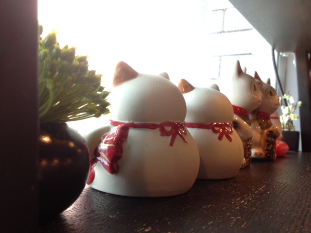 ร้านอาหารญี่ปุ่นเรียกโดยน้องแมวเหมียวตกแต่งด้วยรูปวาดจากสีชอล์กเป็นรูปน้องแมว บรรยากาศวันนี้ดูดี เพราะคนยังโล่งอยู่ มีเมนูใหม่ๆ ติดตรงกำแพงด้วย ไม่ทันอ่าน มีโคร็อคเกะกุ้งเป็นทั้งแกงกระหรี่และข้าว สเต็กทงคัตสึ สลัดทงคัตสึการตกแต่งด้วยตะเกียบประจำโต๊ะ เก๋กู้ดชั้นวางประดับด้วยน้องแมวกวัก หมู ธงปลาคาฟ บลาๆๆ เรียกลูกค้าตามฮวงจุ้ย (รึเปล่า)ราเมนผัดขี้เมากุ้ง สามารถเลือกเป็นหมู ไก่ หรือทะเลได้ ชามนี้สั่งแบบเผ็ดน้อย ก็ได้เผ็ดน้อยจริงๆ เส้นเหนียวกำลังดี กุ้งตัวปานกลาง ไม่ใช่กุ้งแก้ว (แอบดีใจ) ใส่แครอทและหัวหอมด้วย ไม่แข็งนะ เค้าทำสุกได้ที่เลย ทานกับน้ำซุปที่รสชาติแปลกๆ นิดนึง แต่ก็เหมือนซุปทั่วๆ ไปแหละ (งงมะ)ข้าวแกงกะหรี่หมูทงคัตสึ จานบั่กเอ้ก อิ่มแน่นอน ราคาเท่าชามเมื่อกี้ แต่ขนาดช่าง...ต่างกันลิบ แกงกะหรี่ท่วมๆ รสแบบอินเดียๆ ไม่ค่อยเป็นแกงญี่ปุ่นเท่าไหร่ แต่เค้าทำได้อร่อยนะ หมูทอดก็มีเนื้อมีนวลไม่ได้มีแต่แป้งเหมือนบางร้าน อิ่มเต็มคราบ…Read More