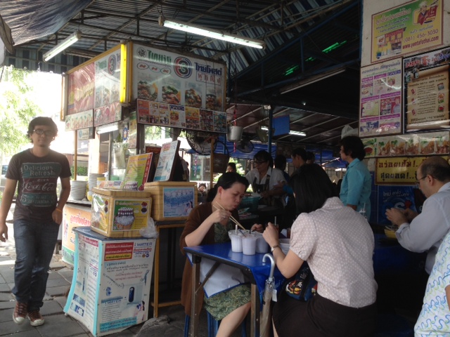 วันนี้มาทานอาหารเที่ยงแบบเดินไกล พี่ที่ออฟฟิศพาไปกินก๋วยเตี๋ยวนายฉุ่ยที่นั่งร้านด้านใน และติดถนนชามนี้สั่งเส้นเล็กต้มยำ 35 บาท รสชาติต้มยำจัดจ้านแสบคอ แสบหูเลยทีเดียว ลูกชิ้นนุ่มๆ กรุ๊บๆ อร่อยดี มีปลาสองลูก กุ้งหนึ่งลูก เกี๊ยวปลาหนึ่ง และเกี๋ยวกรอบก็กรอบอร่อยดี เค้าไม่ได้ทำเป็นแผ่นๆ โดนน้ำเลยยังไม่นิ่มทันที ข้างในยังกรอบดีนะฃเมนูสามารถสั่งก๋วยเตี๋ยวและเกาเหลา ข้าวเปล่าก็มี มีทั้งก๋วยเตี๋ยวต้มยำสามรส ต้มยำแห้ง ขลุกขลิกก็ยังมี หรือจะสั่งเป็นเย็นตาโฟก็ได้ชามของเย็นตาโฟจะกลมๆ หน่อย มีสีสันด้วย ต่างกับก๋วยเตี๋ยวทั่วไป แอบเหลือบมองคนสั่งเย็นตาโฟ เชอะๆ ชาดำเย็นหวานๆ ชื่นใจ แก้วละ 10 บาท กินเสร็จหวัดถามหาเลย ซื้ดดดด…Read More