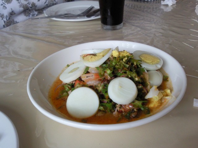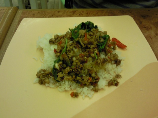 ร้านอาหารขายดิบขายดี คนแน่นทุกวันข้างในเป็นร้านอาหาร ข้างนอกขายพวกขนมจีบซาลาเปาที่แน่นเนี่ย แน่นหน้าร้านนะ ฮ่าๆๆข้างในเป็นร้านเล็กๆ ที่นั่งไม่มากเท่าไหร่กำลังทำซาลาเปาอยู่เลย เห็นกันชัดๆข้างหน้าร้านขายขนมจีบซาลาเปากันอยู่ ตอนนี้ยังโล่งๆ แต่ดึกๆ คนจะเริ่มแน่นข้าวกระเพราหมูสับ เค้าทำไม่เผ็ดมากเท่าไหร่ แต่ถ้าไม่กินเผ็ดก็สั่งเค้าได้นะ หมูสับนุ่มๆ อร่อยดี แต่พริกเยอะไปหน่อย เขี่ยยากนิดนึงก๋วยเตี๋ยวเส้นใหญ่คั่วทะเล เส้นไม่อมน้ำมันมากเท่าไหร่ แต่ก็ยังพอเห็นอยู่บ้าง ทำให้รสเส้นอาจจะมันๆ แต่ก็ลื่นปากลื่นคอ ใส่หัวหอมด้วย มีปลาหมึกกับกุ้งไม่มากไม่น้อยเกินไป รสชาติทั่วๆ ไป …Read More