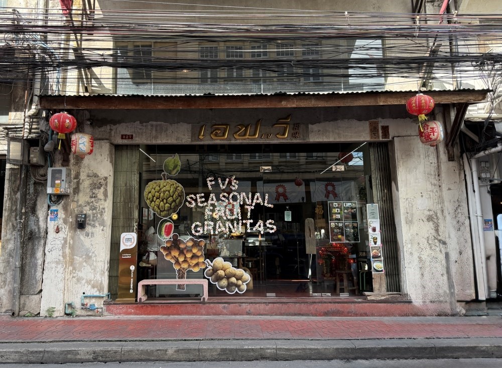 ข้าวผัดพริกเผากุ้ง (180.-) 5. เอฟ วี (F.V.) เป็นร้านคาเฟ่ขนมไทย โดยมีชื่อย่อมาจาก Fruit & Vegetable เมนูขนมและเครื่องดื่มของที่นี่จะทำจากผัก สมุนไพร เน้นเป็นผลไม้ตามฤดูกาล และใช้วัตถุดิบในประเทศไทย ร้านตกแต่งสไตล์ไทยบ้านๆ โปร่งสบาย ร้านยังปรับเมนูหายาก มาเป็นเมนูใหม่อย่าง “ไอติมแตงโมปลาแห้ง” ใครชอบทานขนมไทยอยากให้มาลองกันค่ะ