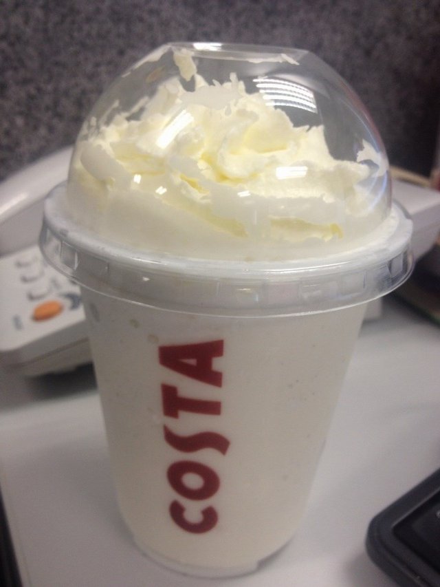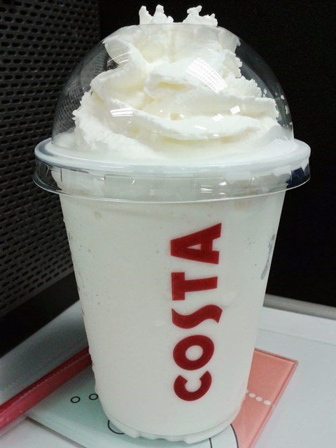 วันนี้กลับมาทานร้านกาแฟร้านนี้อีกครั้งคะ Costa Coffee สาขาตึกเอ็มไพร์ทาวเวอร์ สาทร โดยร้านกาแฟจะอยู่บริเวณก่อนทางเข้าตึกที่เชื่อกันกับสะพานคะ อยู่ตรงหัวมุมตึกเลย มีทั้งที่ันั่งด้านนอก และด้านใน วันนี้สั่งเมนูที่ไม่เคยทานเลยคะ เป็น วนิลาปั่น เพราะอยากลองเมนูอื่นๆดูบ้าง สั่งแต่เมนูเดิมๆเลยเริ่มจะเบื่อแล้ว