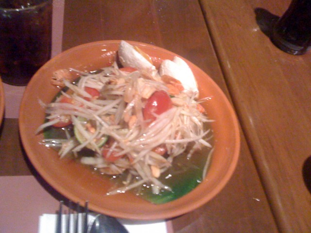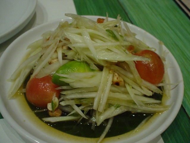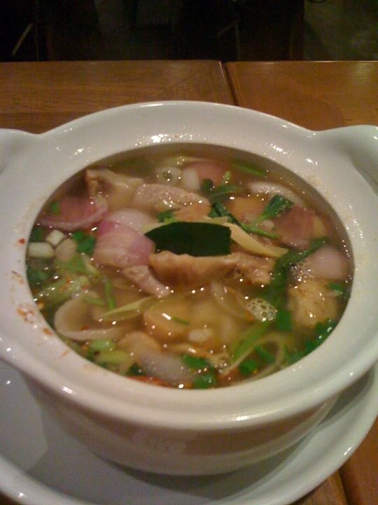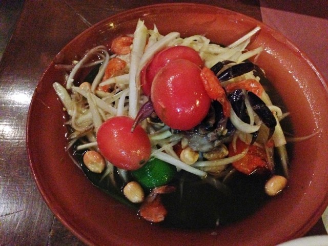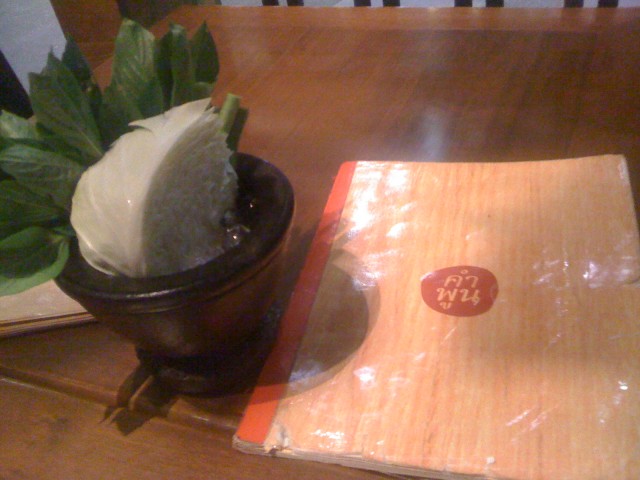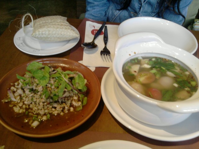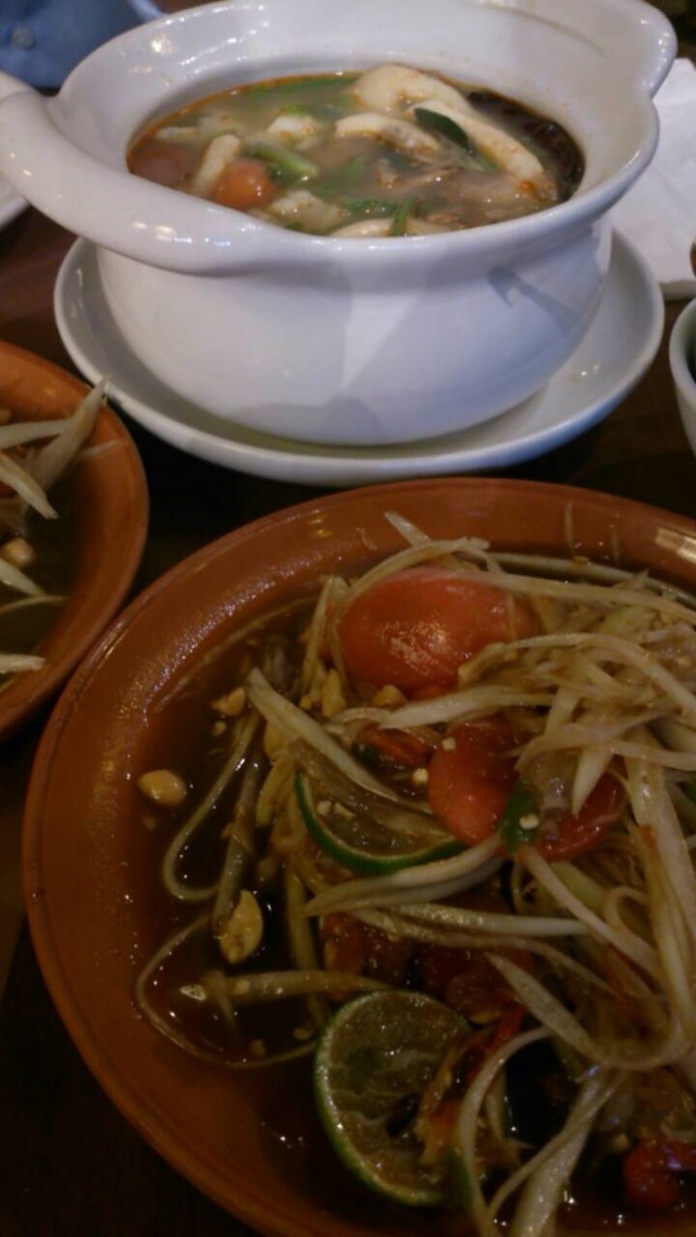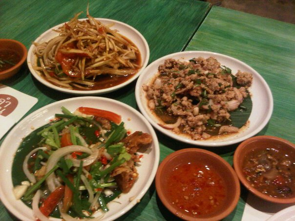 นานๆ จะได้นัดเจอเพื่อนทีค่ะ แต่ละคนคิวทองกันทั้งน้านนน (พูดเหมือนมีเพื่อนเยอะ) วันนี้นัดกัน 3 คน (เดิมๆ)คนแรกเวลานัดขอให้ได้กิน คนที่ 2 ครั้งนี้อยากกินส้มตำ ส่วนตัวเท็ดดี้เองอะไรก็ได้ (ดูดี๊...ดูดี หุหุ / ใครพิมล่ะ?) สถานที่นัดต้องอยู่ตรงกลางทั้ง 3 คน ก็ลงที่เซ็นทรัลเวิล์ดตามระเบียบ ฮาๆๆ เพื่อนๆ เดาได้ใช่มั้ยคะว่าร้านอะไร (ต้องได้สิ เพราะรีวิวบอกอยู่ / ไม่ใช่ละ!) ร้านนี้อยู่ชั้น 7 ค่ะ อยู่ติดกับโรงหนังพอดีระหว่างรอเพื่อนมาช้า ก็ดู trailer ขุ่นแม่มาลีไปพลางๆ เรียกน้ำย่อย (เอ๊ะ?) เริ่มนอกเรื่องละ เข้าร้านกันดีกว่าค่ะ หน้าร้านมีพนักงานต้อนรับคอยเคลียร์คิวโต๊ะ เมนูอาหารวางไว้ให้ดูเพลินๆ ค่ะ โชคดีที่คิวไม่ยาวนัก รอแปปเดียวก็ได้ที่นั่งมากัน 3 คนถึงหิวแค่ไหนก็ต้องยั้งใจยั้งปากกันหน่อยค่ะ สั่งประมาณ 3-4 อย่างกำลังดี สั่งอาหารเสร็จก็ได้ผักสดมากินให้อิ่ม เอ้ย...มาเป็นเครื่องเคียงค่ะ เสิร์ฟเป็นครกเลยนะคะ ถ้าได้สากมาคงตำผักตรงนั้นเลย คริคริ ไอเดียเก๋ดีค่ะ รอพักใหญ่ๆ จานแรกก็มาค่ะ ปลาดุกน้ำจิ้มแจ่ว ปลาดุกตัวพอดีๆ ไม่เล็กเกินไม่ใหญ่ไป เนื้อแน่น ย่างหอมๆ น้ำจิ้มแจ่วไม่เผ็ดมาก แต่ข้อเสียคือจานค่ะ พื้นจานแบนทำให้แกะปลาลำบากเพราะปลาลื่นไถลง่ายค่ะ จาน 2 ส้มตำไทย-ปู จานนี้จำราคาแม่น 80 บาทค่ะ ด้วยความที่กลัวเผ็ดก็บอกพนง.ว่าส้มตำเผ็ดปานกลาง สรุปได้มาแบบเด็กน้อยเลยค่ะ ไม่มีความเผ็ดเลย TT_TT บอกผิดสูตรสินะ! รสเปรี้ยวเค็มก็ไม่มา (ไปไหนทำไมไม่บอก...) ผ่านไปจาน 3 ดีกว่าค่ะ ต้มแซ่บกระดูกหมูอ่อน หม้อนี้อร่อยค่ะ รสชาติกลมกล่อมเปรี้ยวเค็มเผ็ดนิดๆ ซดน้ำร้อนๆ กินคู่กับปลาดุก ฟินนไปเลย