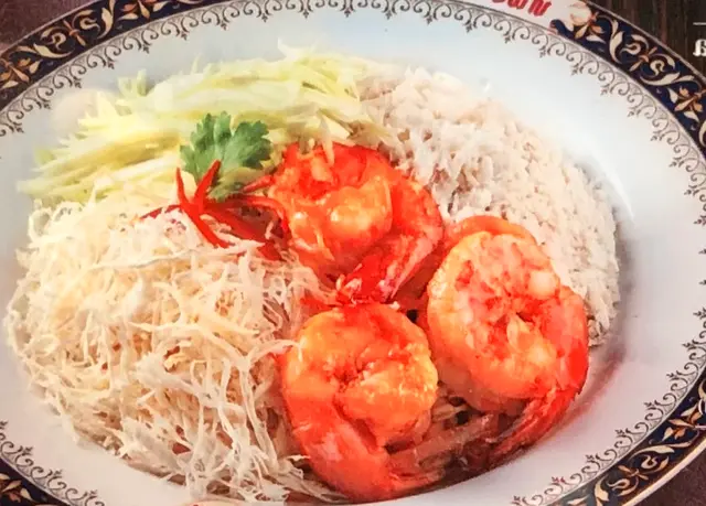 ผัดไทเส้นจันท์มันกุ้งกุ้งสด