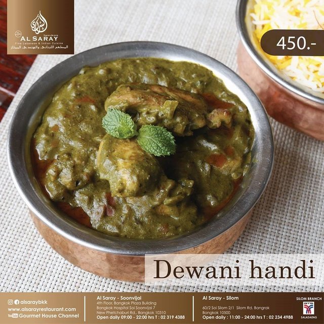 Al Saray (อัล ซาราย) (กรุงเทพและปริมณฑล) Book online to earn Rice Dollars URL: https://s.openrice.com/LcySa01zKSA00 ที่ตั้ง: 60/2 ซอยสีลม 2/1 ถนนสีลม บางรัก กรุงเทพฯ, สีลม, กรุงเทพและปริมณฑล โทร.: +66 02-234-4988