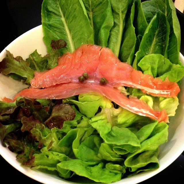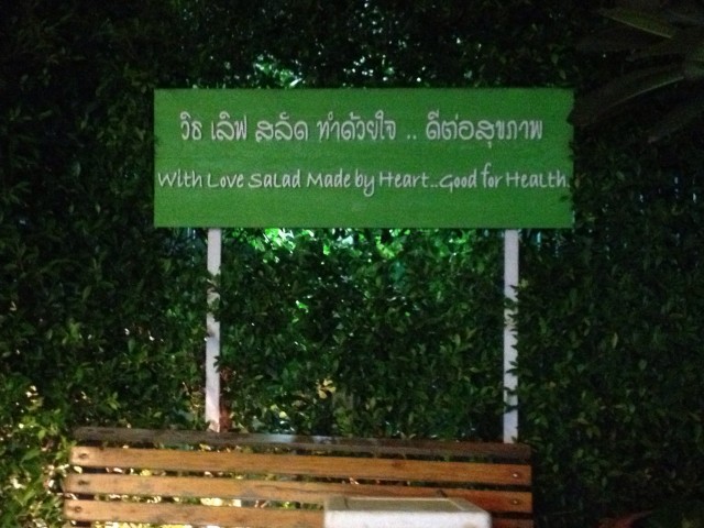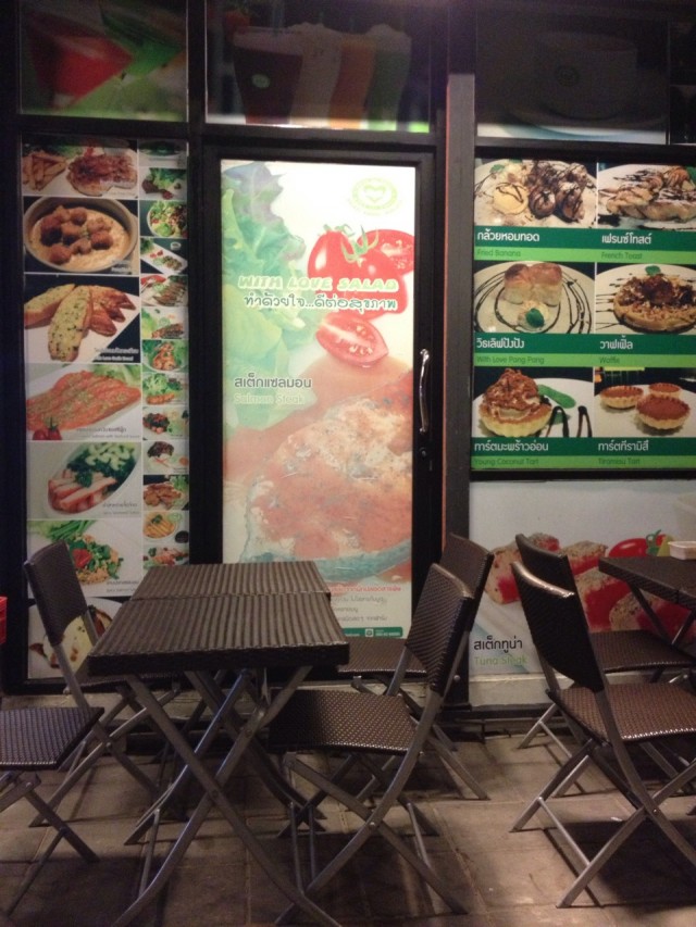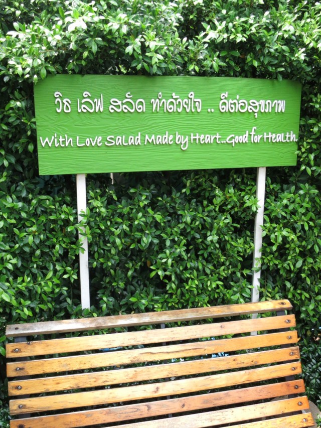 ทานอาหารมื้อหนักๆมาทั้งวันแล้ว มื้อเย็นขอแบบเบาๆหน่อยละกันกับร้าน " With Love Salad "ร้านอาหารน่ารักๆเพื่อสุขภาพ ที่ซ่อนตัวอยู่ภายในซอยใกล้ถนนเลียบทางด่วนรามอินทรา ร้านหาไม่ยาก หากมาจากทางถนนรามอินทรา อยู่ซอยเดียวกับทางเข้าร้านอาหาร Waterside - สลัดผักจานแรก ผักสดและกรอบมาก จานสองเป็นเมนูแนะนำของทางร้าน นอกจากต้นอ่อนทานตะวันที่หาทานยากแล้ว เห็ด ไส้กรอกรมควัน และน้ำสลัดก็รสชาติดีไม่แพ้กัน จานถัดมามีซอสมาให้สามชนิดให้เลือก แต่ผมชอบซีฟู้ดที่สุด จานที่สี่ ผักสดเหมือนจากแรกแต่เพิ่มแซลมอนรมควัน และจานสุดท้าย คนชอบรสเผ็ดร้อนน่าจะชอบจานนี้ที่สุด