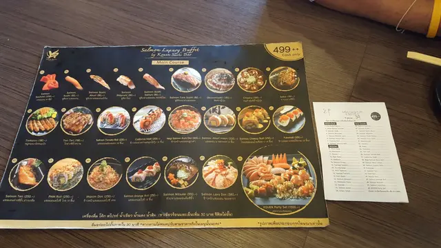 บุฟเฟ่ต์ที่ร้านนี้นะคะ จะมีเมนูให้เลือกค่ะ แล้วเราก็เลือกสั่งได้ตามเมนูที่มีเลยค่ะ โดยที่บนโต๊ะจะมีกระดาษไว้ให้สั่งเมนูค่ะ แค่อย่าลืมเขียนว่าสั่งมาจากโต๊ะไหนด้วยนะคะ ไม่อย่างนั้นอาจจะมาเสิร์ฟไม่ถึงโต๊ะก็ได้ 555