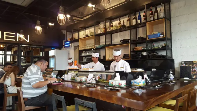 สำหรับร้านนี้นะคะ ร้านเขาไม่ใหญ่มาก มีโต๊ะทั้งนั่งสอง นั่งสี่ ต่อยาวเป็นแถว หรือเคาน์เตอร์บาร์ก็มีนะคะ แต่ครั้งนี้เรานั่งโต๊ะที่ได้สี่คนแต่ไปกันแค่สองคน นั่งสบายเลยยยยย เห็นโต๊ะข้างๆ ผู้ชายมาห้าคนนั่งโต๊ะเท่าเราเลย 555 และมุมที่เชฟทำอาหารก็มีอยู่สองมุมค่ะ