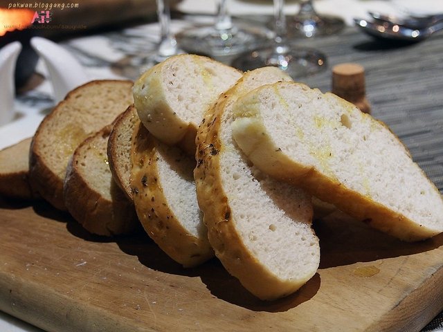 จากนั้นขนมปังก็มาเสิร์ฟก่อนค่ะ มีให้สองแบบนะคะ โดยดิปปิ้งจะเป็นบัลซามิกในน้ำมันมะกอก ซึ่งบัลซามิกน่าจะมีปรุงหรือหมักเพิ่ม เพราะเราได้กลิ่นเหมือนพริกไทยแซมมาด้วยหละ