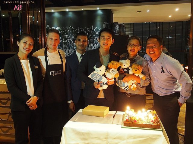 จากนั้นทางโรงแรมก็มีเซอร์ไพรซ์พิเศษสำหรับสื่อสองท่านที่มีวันเกิดตรงกับวันนี้ค่ะ หนึ่งในนั้นก็คือพี่ต้อง ณ เพจไปไหนไปด้วยกัน หรือคู่หูของพี่อุ๊ เพจตามกาลเวลานั่นเองค่ะ ทางโรงแรมนอกจากนำเค้กมาให้เป่าแล้วก็ยังมอบตุ๊กตาหมีให้ด้วยนะคะ น่ารักมากๆ เลยหละค่ะ