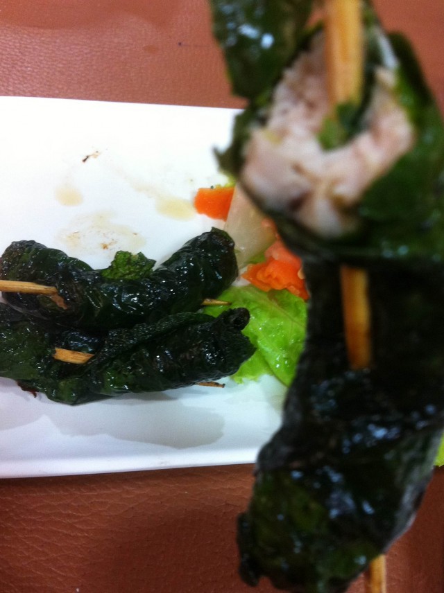 ราคาก็ไม่แพงเมนูหมูห่อใบชะพลูจานนี้90บาทเองคะมีตั้งหลายไม้:)