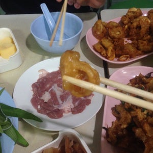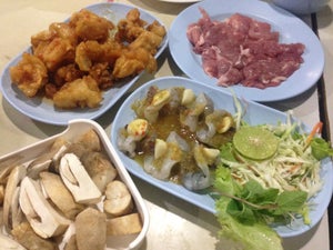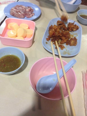 อร่อยยยยแต่รอคิวหน่อยนะ ของอร่อยต้องรอ อิอิ เพิ่งเคยกินครั้งแรก ได้อยู่นะ สุกี้อร่อยน้ำซุปหอมดีอ่ะ สมุนไพรแบบนี้ ละก็หมึกเจ็ท เป็นปลาหมึกทอดคลุกน้ำจิ้มหวานๆ ละก็ไก่ผัดเม็ดมะม่วง ละก็ข้าวตับผัดกระเทียม ราคาไม่แพงอ่ะจริง มาลองกินกันนะคะ