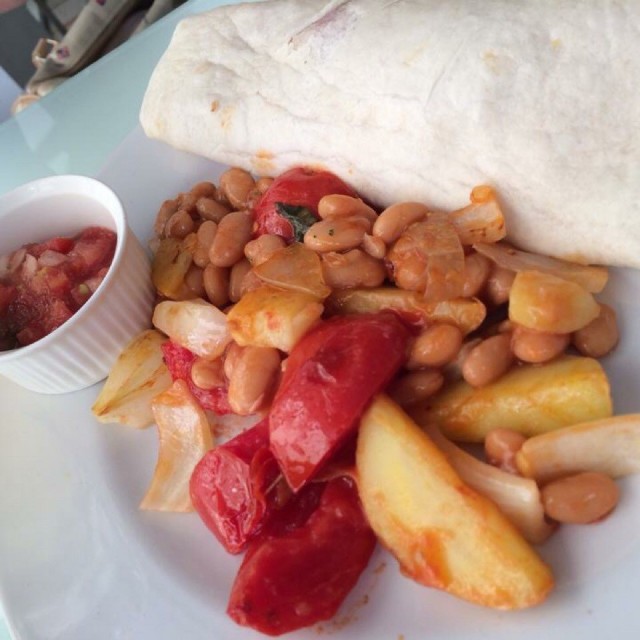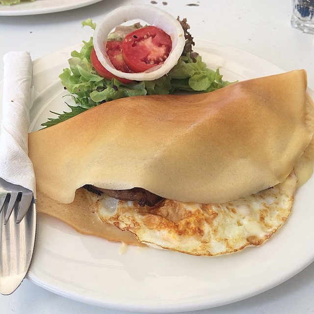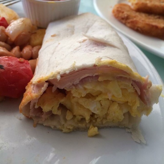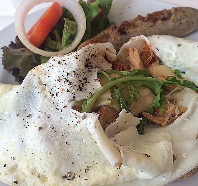 Egg white omelet with chicken, tomato, mozarella and rocket