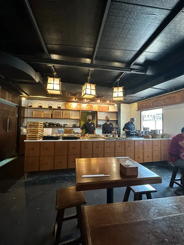 【創意融合。和牛金麵】清邁的網紅美食餐廳,以木質建築打造的全日式的感覺,和風庭院裡很舒適,宛如走進小京都,整體很多細節位,連餐具也別有用心,營造出溫馨的用餐環境。❈ Dumplings with KHAO-SO-i Sauce 109THB (約HK$26)餃子很大一顆,皮薄充滿肉餡,整體有點像日式的中華燒賣。醬汁很特別,微酸帶甜,很開胃。❈ Khao-soi with Aus. Tajima Wagyu 249THB (約HK$59)面是新鮮手工製造的粗圓面,跟傳統的麵條有點不一樣,口感更彈。湯底口味比較創意融合,以泰式為基底,香料味道更柔和一點,椰香味濃。澳洲和牛肉味香濃,口味意外地融和。 …ดูเพิ่มเติม