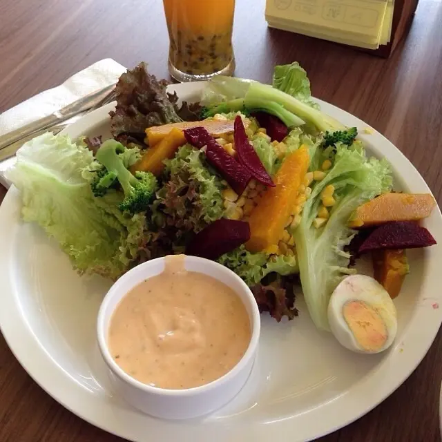 เป็นสลัดที่สามารถเลือกผักได้เอง ว่าอยากทานอะไร แม่เราสั่งเป็นน้ำสลักครีมฟักทองคะ