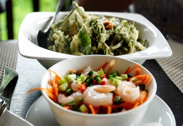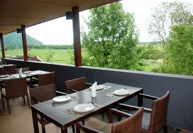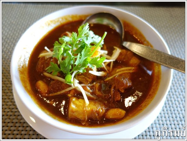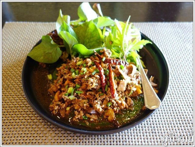 ภูภิรมย์ เป็นหนึ่งในห้องอาหารภายในสิงห์ปาร์ค ตั้งอยู่จุดที่สูงที่สุดของไร่ชา สำหรับท่านที่จะมาทานอาหารอย่างเดียวสามารถนำรถเข้ามาได้เลยครับ ที่จอดรถจะอยู่บนเนิน ทางร้านอาหารมีรถกอล์ฟบริการรับส่งระหว่างตัวร้านกับที่จอดรถตลอดเวลาครับ (สำหรับท่านที่จะมาเที่ยวชมสิงห์ปาร์คอยู่แล้วแนะนำว่าให้มาทานข้าวก่อนหรือหลังจากที่ชมสิงห์ปาร์คครับ ถ้าเช่ารถกอล์ฟเพื่อเข้าชมเค้าคิดราคาเป็นชั่วโมง จะได้ไม่ต้องเสียเวลาทานข้าวไปเปล่าๆครับ)ภูภิรมย์ เป็นร้านอาหารที่เรียกได้ว่าเป็นร้านอาหารหลักของสิงห์ปาร์ค จริงๆตัวร้านจะมี 2 ชั้น แต่ที่ชั้นแรกจะจัดเป็นห้องสัมมนา ตัวร้านจริงๆจะอยู่ที่ชั้น 2 สำหรับผู้สูงอายุทางร้านมีลิฟท์บริการครับ พอลงรถกอล์ฟที่บริการรับ – ส่ง จากที่จอดรถแล้ว ให้เดินลงทางลาดทางซ้ายมือไป สุดทางลาดจะเจอลิฟท์ขึ้นไปข้างๆห้องอาหารได้เลยครับก่อนจะไปเชียงรายก็ไปเสิร์ชดูเมนูของร้านภูภิรมย์ก่อนเพื่อดูว่ามีเมนูอะไรที่เด็กๆพอทานได้บ้างก็พอมีบ้าง แต่ไม่ครบ ก็เลยถ่ายรูปเมนูมาแบบครบๆเลยครับ ขอใส่ไว้ในบล็อกนี้ด้วยเผื่อว่ามีคนอยากดูก่อนไปทานครับน้ำเสาวรส ของเจ้าของบล็อก ส่วนคนอื่นๆพร้อมใจกันสั่งน้ำเปล่า ออร์เดิฟเมือง ราคา 260 บาทเมนูนี้เป็นการรวมฮิตของอาหารเมืองครับ มีแหนม หมูยอ แคบหมู ไส้อั่ว น้ำพริกหนุ่ม และผักเคียง รสชาติกลางๆครับ ไม่โดดเด่น เจ้าของบล็อกถือว่าเป็นการเริ่มทริปเชียงรายก็ต้องทานอาหารเมืองก่อนเป็นมื้อแรกเพื่อเอากฤกษ์เอาชัยครับ อิอิอิกุ้งผัดใบชาทอดกรอบ ราคา 220 บาทจานนี้ไม่ถูกปากเจ้าของบล็อกอย่างแรงครับ เค้าจะเอาไปชาไปชุบแป้งบางๆทอดกรอบ ทอดกุ้งต่างหาก แล้วน้ำมาผัดรวมกันอีกทีพร้อมน้ำซอสหวานๆ เหนียวๆ ตัวใบชาไม่มีรสชาติอะไรเลย แต่ตัวซอสที่ผัดมาด้วยกันมันหวานมากไปครับ รสชาติคล้ายๆน้ำราดปลาสามรสครับ แต่รสอ่อนกว่าและเหนียวกว่ามาก ลาบหมูคั่ว ราคา 160 บาทเมนูนี้เจ้าของบล็อกชอบมากเป็นอันดับสองครับ ลาบหมูแบบภาคเหนือ หอมเครื่องสมุนไพร หอมมะแขว่น เผ็ดนิดเดียว .... เผ็ดมะแขว่นนะครับ รสชาติจะจัดกว่าลาบทางภาคอีสานซึ่งจะออกเผ็ด แต่ลาบเหนือจะรสจัดทั้งเครื่องสมุนไพรและการปรุงรสชาติครับแกงฮังเล ราคา 220 บาทจานนี้เจ้าของบล็อกให้เป็นอันดับหนึ่งของมื้อนี้เลยครับ เจ้าของบล็อกชอบฮังเลที่ออกรสหวานมากกว่าเปรี้ยว ลักษณะของน้ำแกงจะต้องข้นจนจับเนื้อสัตว์และเอาคลุกข้าวได้ รสชาติและลักษณะของแกงฮังเลของร้านภูภิรมย์เป็นแบบที่เจ้าของบล็อกชอบเลยครับ หมูทอดน้ำปลา ราคา 150 บาท