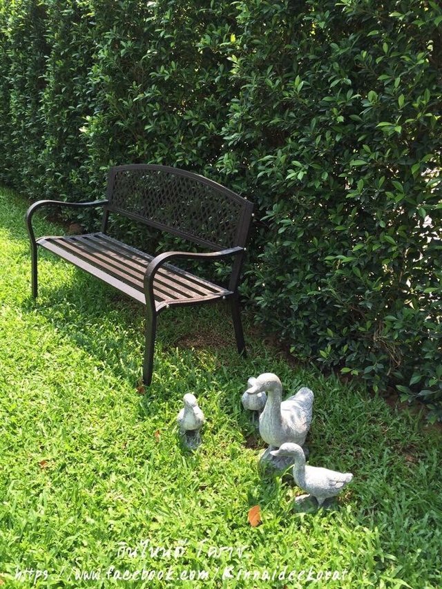 บริเวณด้านนอกจัดเป็นสวนเล็กๆ มีที่นั่งเอ้าท์ดอร์