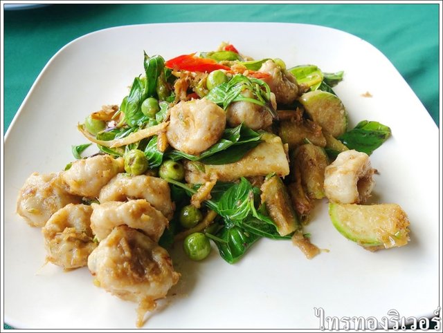 ผัดเขียวหวานลูกชิ้นปลาราย