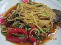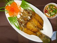 ขาหมูทอดกรอบ คะน้าผัดปลาเค็ม ต้มยำไก่นา ตำไทย ปลากระเบนผัดพริกไทยดำ ปลารากกล้วยทอด