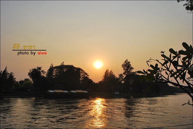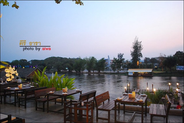 ไปถึงร้านก็คนยังไม่ค่อยมากัน เพราะฟ้ายังไม่มืดเลยได้เวลาชมพระอาทิตย์ตกพอดีเลย
