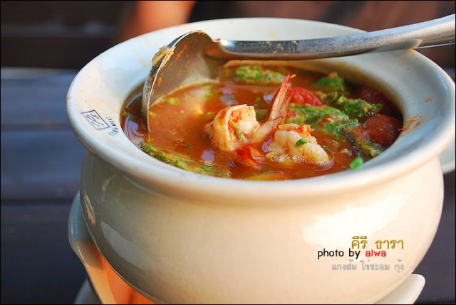 วันนี้เราสั่งอาหารมาแค่ 3 อย่าง อย่างแรกเป็น แกงส้มชะอมไข่ใส่กุ้ง