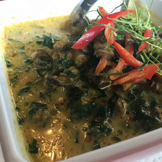 จัดไปเลยดีกว่าการเดินทาง: ตั้งต้นจากศูนย์การค้าจังซีลอน ไปร้านกาบกล้วย ห่างกันประมาณ 3กิโลเมตรเองจ้าออกจากศูนย์การค้าจังซีลอน วิ่งมาเส้นถ.ราษฎร์อุทิศ200ปี ขับวนผ่านหน้าโรงแรมมิลเลนเนี่ยม รีสอร์ท ในศูนย์การค้าฯ ขับไปตามทาง จากนั้นจะเจอวงเวียนให้เลี้ยวซ้ายไปยังถนนเส้นด้านหลังศูนย์การค้าจังซีลอน จากนั้นวิ่งตรงไปเรื่อยๆอีกประมาณ 2 กิโลเมตร จะเจอสามแยกใหญ่ ให้เลี้ยวขวาเข้าถ.พระบารมี แล้วขับไปอีกประมาณ 350 เมตร ก็จะเจอร้านกาบกล้วยอยู่ริมถนนด้านซ้ายมือ หาที่จอดแถวริมถนนเลยค่ะ ร้านเปิด 11 โมงนะคะ ร้านตกแต่งเป็นโทนสีเขียว หน้าร้านปลูกต้นไม้ทำเป็นกำแพงเล็กๆ พื้นที่ร้านไม่ใหญ่มาก วันนั้นที่เราไปช่วงเริ่มค่ำ โต๊ะก็เกือบเต็มนะคะ มีฝรั่งไปทานด้วยนะเออเริ่มจาก ต้มข่าไก่ ถ้วยละ 95 บาท หากสั่งเป็นหม้อ ก็หม้อละ 170 บาท วันนี้กลุ่มนักเดินทางของเราอยากลองชิมอาหารหลายอย่างดังนั้นจัดมาเป็นถ้วยก็พอ :) รสชาติโอเคค่ะ ผู้ใหญ่ในทริปพยักหน้าโอเค .. ผ่านต่อด้วยเมนูเอาใจผู้รักสุขภาพซะหน่อย ยอดมะระเห็ดหอมผัดน้ำมันหอย จากนี้ทุกคนชิม..ร้องอื้อหือ อร่อยจังผัดผักได้หวานกรอบ ชอบค่ะเมนูประจำ ไปร้านไหนก็สั่ง 55ด้วยความชอบส่วนตัวค่ะ กุ้งแช่น้ำปลา 95 บาท ใช้ได้นะคะ :) ก็ร้านอยู่ในเมืองใกล้ทะเลแบบนี้ ของทะเลก็สดอยู่แล้ว ชอบค่ะจำชื่อเมนูไม่ได้อ่ะ น่าจะเป็นห่อหมกทอด ก็แปลกตาดีค่ะ รสชาติไม่ได้ปลื้มอะไรกันมากนะต่อด้วย ห่อหมกทะเล ราคาประมาณร้อยกว่าบาท อร่อยจ้าปลากะพงทอดน้ำปลา เอาใจผู้ใหญ่ต้องทานปลาเยอะๆ จานนี้อร่อยเช่นกันค่ะปิดท้ายด้วยน้ำพริก