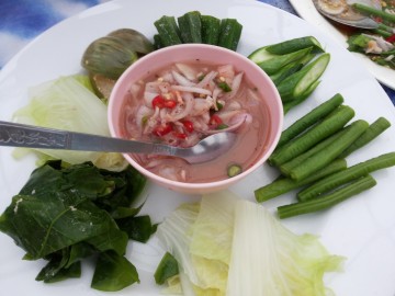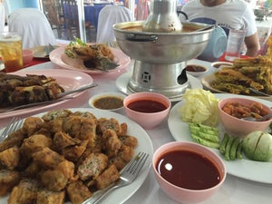 น้ำพริกกุ้งสด อร่อยครับ หอมกะปิ กุ้งสับเป็นชิ้นเล็กๆในน้ำพริก เนื้อกุ้งหวานอร่อย โทนรวมๆเข้มข้นหวานเค็ม อร่อยครับ ผัดรวมลวกมาให้ สะอาดและหวานในตัว 9/10 ครับแล้วแวะไปชิมกันได้นะครับ โดยรวม อร่อยสำหรับเมนูปลาทอดต่างๆนะครับผมว่า อย่างอื่นเฉยๆ ส่วนเมนูยำ ต้องปรับปรุงด่วน พนักงานรับออเดอร์ผิด หน้างออีก ไม่ค่อยมืออาชีพครับ และ ช้อนหรือแก้วบางคนบนโต๊ะอาหารมีคราบเขม่าเหมือนของรถยนต์หนะครับติดอยู่ ลาไปก่อนครับ สวัสดีครับ…ดูเพิ่มเติม