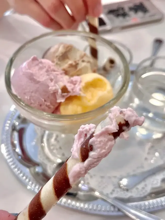 刚好路过美女就拿着小甜筒让我们试吃,这一口口哄得我们就自已的坐进店里了😽香蕉巧克力🍫口感特别的丝滑,而且他的巧克力和香蕉味都是很纯正的原汁原味的香甜🍌,既不会很腻,还带着醇厚的香气樱桃酸奶的也很特别,是之前从未吃过的味道🍒,再和巧克力棒混合在一起,是酥脆与丝滑互相结合,滑的牙齿发软🤙🏻而且性价比很高,算下来才10块钱一个球💵这谁不爱啊…ดูเพิ่มเติม