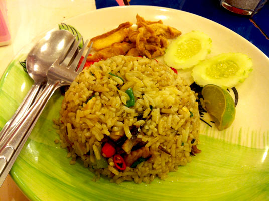 ข้าวผัดปลาทู... ผัดข้าวหอมมาก กินกับกากหมูทอดกรอบ อร่อยๆ แต่พริกเผ็ด+เยอะไปหน่อย (สุดท้ายเลยมานั่งเขี่ยพริก -*-)จานนี้มาเร็วมาก ไม่ถึง 10 นาที ราคาก็โอเคนะ เรากินข้าว+ น้ำเปล่า รวมแล้วประมาณ 100 …ดูเพิ่มเติม