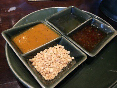 泰式拼盤有好多小食俾你揀,單係串燒既醬汁已經有四款!