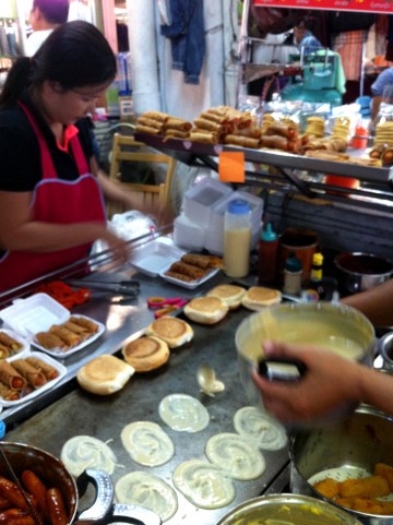 โอ้หน้าทานมากกกกหน้าร้านคนเยอะจริงๆค่ะตอนที่มารอน่าจะเป็นคิวที่ 5-6 ได้ค่ะ กลิ่นขนมหอมมากๆเลยคุ้มที่จะรอค่ะพอมาเห็นไส้ที่เค้าใส่ไว้ในหม้อแล้ว อึ้งไปเลยค่ะ ไส้กรอก แฮม เบค่อนชิ้นใหญ่มากๆนี่หรอที่จะเอาไว้ใส่โตเกียวจริงๆ?