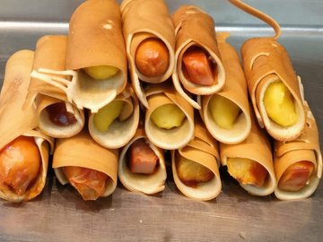 ขนมโตเกียวไส้เบคอนพันไส้กรอก / ขนมโตเกียวไส้ไข่นกกระทา / ขนมโตเกียวไส้บิ๊กไบค์ / ขนมโตเกียวไส้ปลาชีส / ขนมโตเกียวไส้สเต็กไก่ / ขนมโตเกียวไส้หมูแฮม