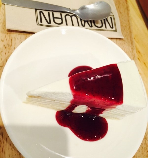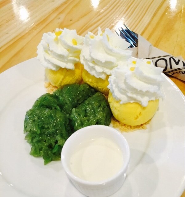 Crepe cake with green tea suace, Nomwan's mango and sticky rice