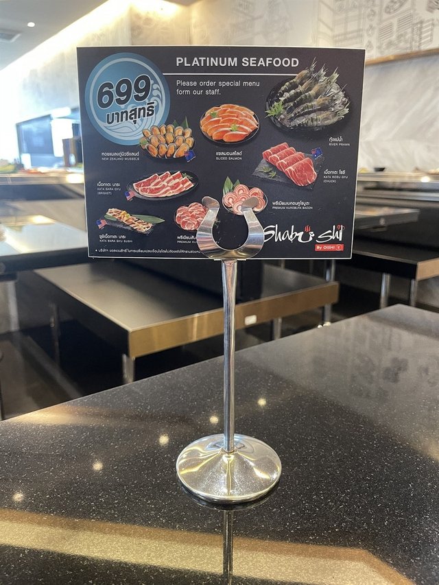 หลาย ๆ คนน่าจะคุ้นเคยกับการให้บริการของ ชาบูชิ สาขา เซ็นทรัลเวิลด์ กันบ้างแล้ว แต่ตอนนี้เค้ามีบริการรูปแบบใหม่ให้เราตื่นเต้นกว่าเดิมนั่นก็คือ บุฟเฟต์หลากหลาย มีให้เลือกถึง 3 แบบ 3 ระดับราคานั่นเองโดยบุฟเฟต์ 3 ระดับราคานั้นจะเริ่มจากระดับ“GOLD Buffet” 429.- ทานได้ไม่อั้นเหมือนเดิมกับเมนูมาตรฐานอย่าง ชาบู-ชาบู ซูชิ ฯลฯ ตามมาด้วย “PLATINUM Buffet” 599.- นอกจากเมนูมาตรฐานทั่วไปแล้ว ยังมีเมนูเอาใจคอเนื้อ ทั้งเนื้อกาตะ บาระ, เนื้อกาตะ โรซึ, ซูชิเนื้อกาตะ บาระ นอกจากนี้ยังมีพรีเมียมเบคอนคูโรบูตะ, พรีเมียมสันคอคูโรบูตะ อีกด้วยนะสุดท้ายกับ “PLATINUM SEAFOOD Buffet” 699.- ที่นอกจากจะทานได้ทั้งเมนูมาตรฐาน และเนื้อพรีเมียมต่าง ๆ แล้ว เราก็ยังจะได้ฟินขั้นสุดกับเมนูซีฟู้ดอย่าง แซลมอนสไลซ์, หอยแมลงภู่นิวซีแลนด์, และ กุ้งแม่น้ำ ได้แบบจัดเต็มอีกด้วยมาทั้งทีก็ขอแบบจัดเต็ม วันนี้เราเลือกแบบขั้นสุด “PLATINUM SEAFOOD Buffet” 699.- ค่ะเมื่อแจ้งกับทางพนักงานว่าจะทานแบบ PLATINUM SEAFOOD Buffet แล้ว เค้าก็จะมีป้ายแบบนี้มาตั้งให้ที่โต๊ะ โดยเราสามารถแจ้งขอเมนูที่อยู่บนป้ายกับพนักงานได้เลย แล้วเค้าก็จะมาเสิร์ฟให้ค่าขอแวะไปตักซูชิกับของกินเล่นอื่น ๆ ก่อน จะได้นั่งทานแบบยาว ๆ *โดยทางร้านเน้นย้ำว่า ต้องสวมหน้ากากอนามัยและถุงมือพลาสติกเวลาตักอาหารเสมอ*ไปตักซูชิแป๊บเดียว มาถึงก็อย่างที่เห็น เมนูที่สั่งไว้มาเต็มโต๊ะเลยมาเริ่มทานกันค่า เราขอเริ่มที่เมนูซีฟู้ดก่อนนะคะ#กุ้งแม่น้ำ สด ๆ ตัวโต ๆ ที่บางตัวตรงส่วนหัวกุ้งมีมันกุ้งคือฟินนนน#แซลมอนสไลซ์ คนรักปลาแซลมอนต้องเลิฟ เพราะทานได้แบบไม่อั้น !!!#หอยแมลงภู่นิวซีแลนด์ ตัวโต เนื้อแน่น ไม่คาวด้วยจบจากซีฟู้ดแล้ว ก็ขอเอาใจสายเนื้อนิสนึง โชว์เนื้อให้เห็นกันชัด ๆ กันเลย#เนื้อกาตะ บาระ (เนื้อส่วนพื้นท้อง) ใครชอบแบบติดมันนิด ๆ ชอบแน่นอนค่า#เนื้อกาตะ โรซึ (เนื้อส่วนสันคอ) ชิ้นใหญ่มาก เนื้อแน่น ๆ เต็ม ๆ คำ#ซูชิเนื้อกาตะ บาระ อร่อยกับเนื้อแบบเต็ม ๆ คำ ข้าวก้อนนิดนึง ส่วนตัวเราว่าซอสหวานไปหน่อย แต่โดยรวมอร่อยค่าสายหมูอย่าน้อยใจไป เราพามาแนะนำต่อแล้ว#พรีเมียมเบคอนคูโรบูตะ ตัวเบคอนจะเนื้อแน่นและมีความหนึบ ๆ กว่าเบคอนทั่วไป#พรีเมียมสันคอคูโรบูตะ สไลซ์มาแบบไม่หนา ไม่บางจนเกินไป เนื้อแน่นกำลังดี ทานเพลิน ๆ แป๊บเดียวหมดจานจัดหนักกับชาบูไปแล้วขอปิดท้ายด้วย #ไอศกรีม ซอฟต์เสิร์ฟ ฮอกไกโด มิลค์ ที่ยังคงหอมนม นุ่ม ละมุนลิ้นเหมือนเดิม ถ้วยเดียวไม่เคยพอและสำหรับใครที่ห่วงเรื่องมาตรการความสะอาดปลอดภัย บอกเลยว่าหายห่วงค่ะ เพราะที่ร้านเค้ามีมาตรการตั้งแต่