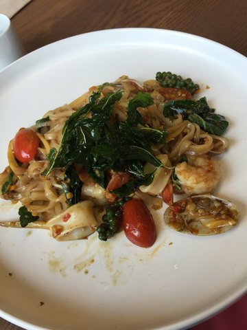 Locals are familiar with the S&P brand, this expansive white space feels like a cantine and has a coffee bar, serves nice meals and sweets and an area set aside for cooking and cake decorating class, plus some bake goods to go. Lunch time occupied by mostly office workers from the building. We had some fresh OJ, healthy rice rolls with pork stuffing, the rice noodle with seafood is too spicy, the saving grace is the salad with salmon. As for dessert, the sponge cake looks better than tasted.…查看更多