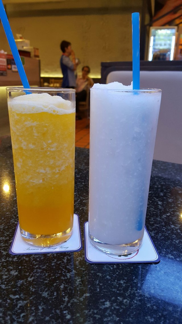 ส่วนเครื่องดื่ม เป็นน้ำส้มปั่น รสชาติออกหวาน พออร่อย แต่น้ำมะพร้าวปั่นนี่ไม่ค่อยโอค่ะ ดูดไปคำแรกคิดว่ากินน้ำกะทิอยู่ซะอีก ไม่มีความหอมของมะพร้าวน้ำหอมเลยค่ะ ส่วนเนื้อมะพร้าวก็ปั่นมาพร้อมกันเลยค่ะ น่าจะเอาเนื้อมะพร้าวเป็นชิ้นๆวางไว้ข้างบนดีกว่าเนอะ จะได้เคี้ยวด้วย