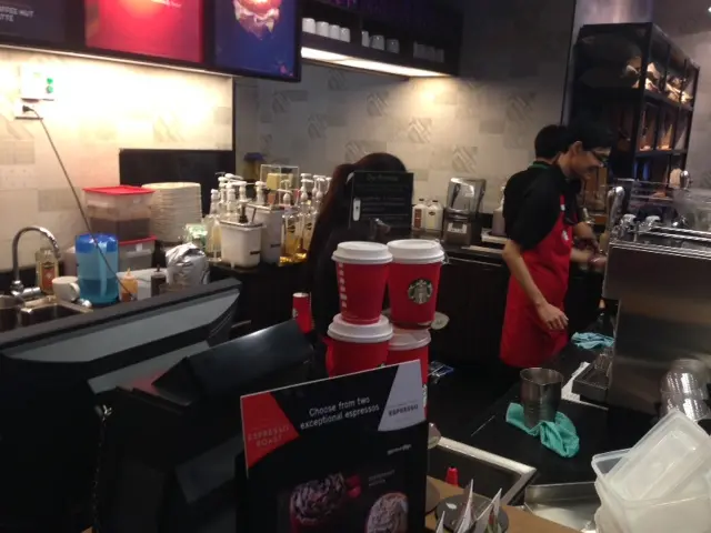 การบริการ : ไม่ต้องพูดถึงเลยคะ สำหรับร้านสตาร์บัคการบริการระดับประทับใจอยู่แล้วคะ พนักงานสุภาพ เต็มใจให้บริการทุกสาขาเลย พูดได้ว่าเมื่อตัดสินใจเข้าร้านนี้ไม่มีผิดหวังเรื่องรสชาติ บรรยากาศและการให้บริการแน่นอน
