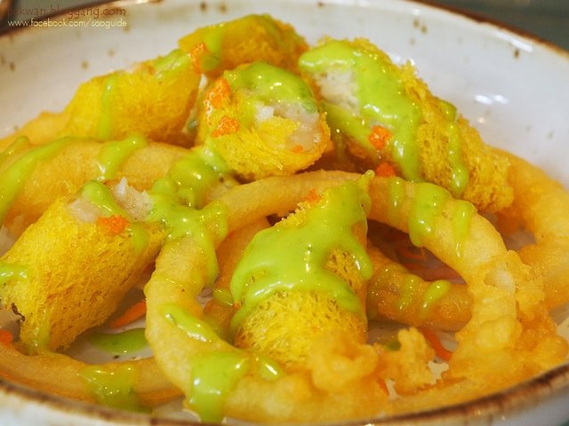 ทอดมาดีอีกเช่นกันค่ะ มีซอสวาซาบิมาช่วยตัดรส แต่ไม่ได้แรงมากนะคะ กำลังดีหละ เหมือนผสมอะไรให้รสออกหวานนวลเพิ่มอีกหน่อยค่ะ
