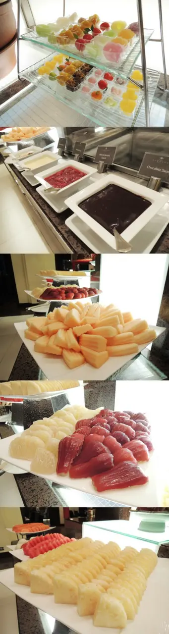 ขนมไทย มาเป็นแบบคำเล็กๆ หลากหลายชนิดเลยค่ะ แล้วก็มีข้าวเหนียวเปียกด้วย ซึ่งเราไม่ได้ชิมเลยค่ะ อีกทั้งผลไม้นานาชนิด