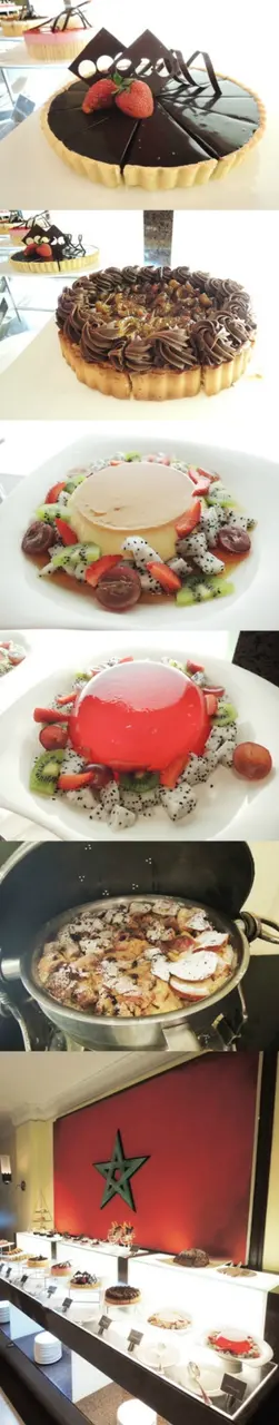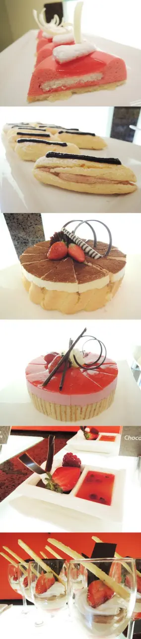 ขนมและเค้กฝรั่ง มูสราสพ์เบอร์รี่ เอแคลร์ ทีรามิสุ เค้กมูสสตรอเบอร์รี่ ช็อกโกแลตครีมพอต ไวท์ช็อกโกแลตมูส ทาร์ตช็อกโกแลต เค้กอินทผาลัมฮาเซลนัท คัสตาร์ดคาราเมล เจลลี่ พุดดิ้งขนมปัง