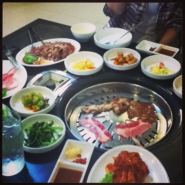 ร้านกังนัม โคเรียน บาร์บีคิว Gangnam Korean BBQเป็นร้านบุฟเฟ่แบบเกาหลี แต่ราคาไม่แพงเลยแถมยังกินได้นานกว่าพวกในห้างที่เปิดกันเกลื่อนอีก เตาก็ดูสะอาดสะอ้านที่ชอบที่สุดของที่นี่คือเบคอน เบคอนที่นี่อร่อยมาก ย่างแล้วจะกรอบๆรสเค็มๆมันส์ๆอร่อยดี จิ้มน้ำจิ้มยิ่งอร่อยมาก เนื้อไก่ของที่นี่ดูสะอาดไม่มีกลิ่นคาวเลยย่างแล้วยิ่งหอมอร่อย เนื้อหมูก็อร่อยไม่แพ้กันแต่เบคอนอร่อยที่สู้ดๆๆแต่ผักสดที่นี่ดูไม่ค่อยสดเท่าไหร่ อาจแช่ตู้เย็นไว้นาน