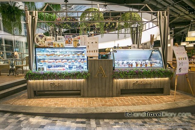 ส่วนโซนสุดท้ายคือมุมตรงข้ามร้านซึ่งมุมนี้เป็นมุมที่ใช้วางเค้ก เบเกอรี่ และไอศกรีม ซึ่งเป็นพื้นที่ที่สามารถแวะมาทานแต่ของหวานชิลๆ ได้สบายๆ