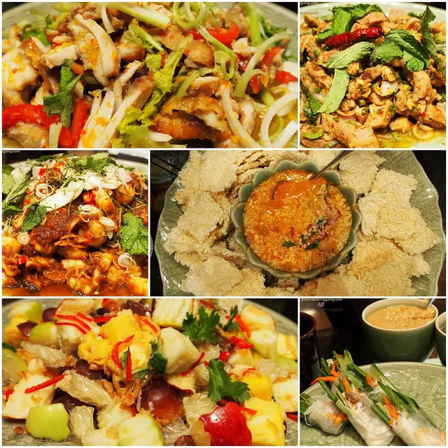 มีทั้งสลัดยำแซลมอน สลัดถั่ว สลัดหมู สลัดเนื้อ สลัดไก่ สลัดทะเล สลัดมันฝรั่ง สลัดบีทรูท น้ำพริกกุ้งสดพร้อมผัก ยำหมูย่าง น้ำตกหมู ข้าวตังหน้าตั้ง พล่าหอยเชลล์ ยำผลไม้และปอเปี๊ยะสด เรียกว่าอยากกินยำด้วยวัตถุดิบอะไร มีครบหมดหละค่ะ 555