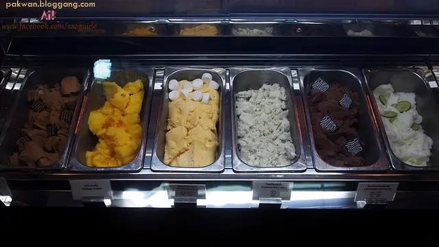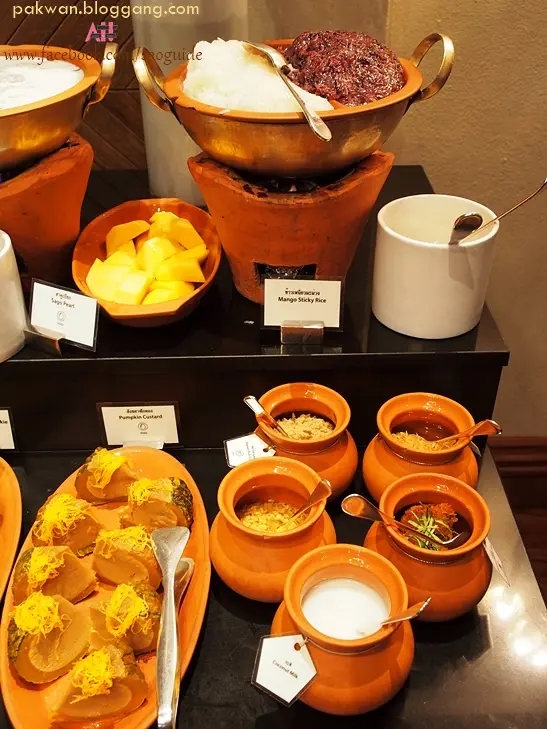 ส่วนของหวาน เราได้ลองคือ ข้าวเหนียวหน้าต่างๆ หน้ากระฉีกคือดีมาก ละมุน ไม่หวานเกินไป มะม่วงก็ดีค่ะ หวาน (มีหลายคนตักเฉพาะมะม่วงไปกินกันฮ่ะ) ตัวหน้ากุ้งก็หอมเครื่องมากๆ แต่ไม่แน่ใจว่าที่เค็มไปนิดนี่มาจากข้าวเหนียว กะทิหรืออะไรนะคะ แต่โดยรวมถือว่าดีค่ะ กล้วยเชื่อม นิ่ม ทั่วไปค่ะ ไม่มีอะไรเด่น ลูกชุบดีเช่นกันค่ะ เนื้อเนียน