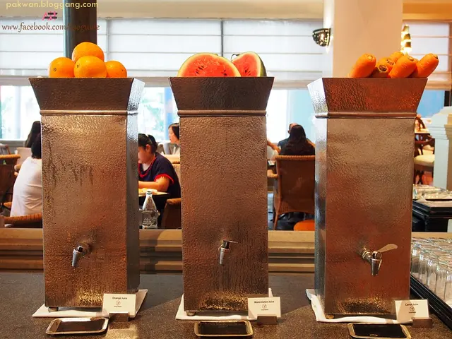 ส่วนน้ำผลไม้ที่รวมในบุฟเฟต์แล้ว (ชากาแฟก็รวมแล้วค่ะ แต่สั่งกับพนักงานนะคะ) ก็จะอยู่ตรงบริเวณใกล้ๆ ที่นั่งนะคะ วันนั้นมีน้ำแครอท ส้มและแตงโมฮับ