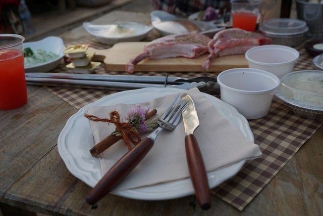 การมาที่นี่จริงๆจุดประสงค์หลักของเรา คือมาเสพบรรยากาศสวยๆ ที่แบบเห็นในรูปแล้วมันสวยจริงๆพอได้มาจริงๆก็ไม่ผิดหวังค่ะ เรามาถึงจุดนัดพบเวลา 16.30 น รอรถของทางแคมป์มารับเข้าไปด้านใน พอถึงก็ลงทะเบียนมีเวลคัมดริ๊งค์อร่อยๆ แล้วก็รอเวลาด้วยการถ่ายรูปเล่นไปเรื่อยๆ นอกจากนั้นก็มีกิจกรรมอื่นให้ทำ เช่น ขี่ม้า พายเรือ วาดรูปค่ะ ทางพนักงานก็จะจัดโต๊ะให้แล้วรอซัก 18.00 น.ก็จะเริ่มจุดถ่าน เสิร์ฟชุดปิ้งย่าง มีเมนหลักคือ เนื้อหมูชิ้นใหญ่คนละ 1 ชิ้น ไส้กรอก ผักสดๆและเห็ดออรินจิ น้ำแข็ง น้ำแร่ฟรีค่ะ มีเครื่องเคียงด้วยพวกมันบด หอมซอยในมายองเนส (เรียกไม่ถูก--") อยู่ในฟอยล์ให้เราเอาไปย่างได้ค่ะ