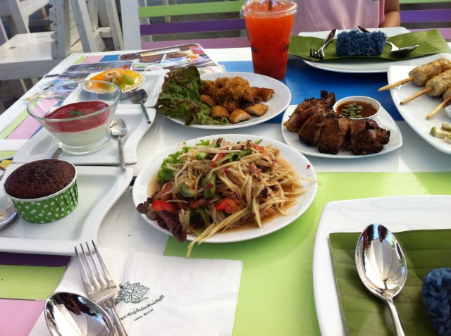 ตอนไปเชียงรายครั้งแรก อยากกินร้านนี้ แต่ว่าครั้งก่อนอิ่มจากร้านอื่นมาก่อน เลยไม่ได้กิน ไปเชียงรายอีกครั้ง ได้กินสมใจแล้ว ร้านจันกะผัก จากตัวเมืองเชียงราย ขับรถจากตัวเมืองไปแม่สาย ตามถนนพหลโยธิน มีป้ายบอกเป็นระยะ จันกะผัก เป็น ชื่อ ของ พระองค์เจ้าจักรพันธุ์ เมนูของร้านไม่ได้เยอะมาก แต่ได้กินผักสดๆๆ แน่ๆๆ ส้มตำปูปลาร้า 45 B อร่อยจนสั่งมาอีกจาน ส้มตำอร่อย ปลาร้ากลิ่นไม่แรง ตำมาสองครก อร่อยเหมือนกันทั้งสองครกเลย ชุดผักน้ำพริกหนุ่ม 75B น้ำพริกหนุ่มยังไม่ได้แซ่บมาก แต่ผักสด แท้ๆ เลย ผักเขาหลากหลายดีด้วย ตัวน้ำพริกหนุ่มจืดไปหน่อย ปลานิลจิตรลดา 85B ชอบอันนี้ เขาเอามานิลเป็นชิ้นเล็กๆ พอดีคำ ทอดมากรอบๆๆๆ ปลานิลสด แล้วทอดมากรอบกำลังดี ต้มยำ หม้อไฟปลาคัง 250B เมนูที่อยากแนะนำ อร่อยยยยยยยยยย ต้มยำเขานัวมากกกก อร่อยจริงแนะนำ ปลาคังส้ดสด แล้วใส่เห็ดออริจิมาเยอะ เลย ทุกคนชอบมากกก ไก่ย่าง 55B ไก่ย่างธรรมดาแต่อร่อย หอมกลิ่นสมุนไพรที่หมักมา น้ำจิ้มแจ่ว ดี น้ำอัญชัน 30B เป็นน้ำอัญชัน มะนาว อันนี้ธรรมดา สรุปรวมแล้วติดอกติดใจ อาหารเมนูไม่เยอะมาก แต่อร่อบเกือบทุกเมนู รสชาติจะไม่ได้จัดจ้านสุดๆ แต่อร่อยแน่ ยิ่งต้มยำ ดีงาม …查看更多