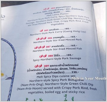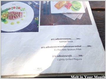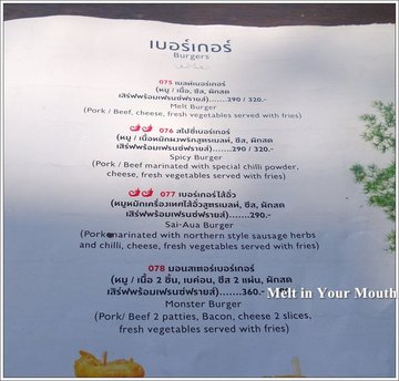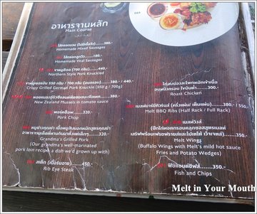 ร้าน Melt In Your Mouth เชียงราย ก็เป็นอีกร้านหนึ่งที่อยู่ในลิสต์ที่เป็นร้านที่ต้องไปให้ได้ในทริปเชียงรายที่ผ่านมา เค้าลือกันว่าร้านสวย อาหารอร่อย วิวริมแม่น้ำกกสวย ก็เลยต้องจัดไปให้ครบครับร้าน Melt In Your Mouth เชียงราย ตั้งอยู่เลขที่ 268 หมู่ที่ 21 ถนนเทิดพระเกียรติ ซอย 3 ตำบล รอบเวียง อำเภอ เมืองเชียงราย ทางเข้าจะซับซ้อนเล็กน้อยครับเพราะร้านจะอยู่ริมแม่น้ำกก ติดสวนสาธารณะเกาะลอยครับร้าน Melt In Your Mouth เชียงราย เป็นร้านอาหารแบบ Casual Dining ที่มีบรรยากาศสบายๆ ตกแต่งร้านในสไตล์ French Vintage เน้นโทนสีขาว – ดำ เฟอร์นิเจอร์หวายและหนัง แต่ดูไม่ขรึมเพราะว่าทางร้านแต่งให้คล้ายๆ Conservatory หรือห้องที่เป็นกระจกติดกับสวนของคนอังกฤษครับด้านนอกก็ยังมีที่นั่งอีกเยอะเชียวครับ ร่มรื่น แดดไม่ร้อน มีวิวแม่น้ำกกให้มองด้วยครับก่อนไปเชียงรายก็พยายามหาเมนูของร้าน Melt In Your Mouth เชียงราย เจอตามเวบบ้างแต่ไม่ครบ พอได้มาที่ร้านจริงๆแล้วก็เลยถ่ายมาจนครบครับ น้ำส้มจี๊ดออแกนิคใส่น้ำผึ้ง ราคา 120 บาทส้มจี๊ดเป็นส้มจี๊ดออกแกนิคที่มาจากสวนของทางร้านเองนะครับ รสชาติจะออกเปรี้ยวหวาน สดชื่นมากๆครับHeavenly Orchard ราคา 110 บาทเป็นส่วนผสมของ น้ำส้ม น้ำมะม่วง และใบมินต์สดๆ น่าแปลกที่ไม่มีสีของน้ำส้มเลยครับ ตอนแรกนึกว่าจะมีกลิ่นมินต์มากซะอีก เอาเข้าจริงมีกลิ่นมินต์น้อยๆพอให้สดชื่นแค่นั้นครับBlue Ocean ราคา 110 บาทแก้วนี้จะหวานๆ ซ่าๆ ครับPink Valentine ราคา 110 บาทมีส่วนผสมของ น้ำส้ม น้ำลิ้นจี่ น้ำมะนาว แก้วนี้ออกรสหวานๆ หอมกลิ่นลิ้นจี่ สมกับที่มีสีชมพูหวานๆเลยครับอาหารจานแรกเป็นอาหารทานเล่น ลาบทอด ราคา 165 บาทจานนี้ยอมรับเลยว่าราคาสูงเกินไปครับ ราคาสูงกว่าบางร้านในกรุงเทพฯซะอีก แต่จานนี้เป็นจานโปรดของเจ้ามือครับเลยทำเป็นไม่รู้ไม่ชี้เรื่องราคาครับอิอิอิ ส่วนรสชาติ .... ธรรมดามากครับ .... เสียดาย 165 บาท มากกกกกกกกก ฮ่าๆๆๆๆชุดกระเช้าน้ำพริกเมลท์ ราคา 330 บาทจานนี้ถูกปากเจ้าของบล็อกแค่น้ำพริกหนุ่มกับผักสดครับ น้ำพริกหนุ่มไม่เผ็ดมาก รสชาติกำลังดีเชียว ไม่แน่ใจว่าที่ร้านทำเองหรือเปล่า ผักสดต่างๆก็สด กรอบ หวานมากๆ ..... แต่น้ำพริกอ่องไม่ถูกปากเลยครับ เจ้าของบล็อกชินกับน้ำพริกอ่องรสชาติเข้มข้น ไม่ชินกับน้ำพริกอ่องรสจางๆแบบที่ร้าน Melt In Your Mouth เชียงราย ครับ Melt BBQ Ribs - Half Rack ราคา 380 บาทเมนูนี้อร่อยครับ เนื้อนุ่มมากๆ เลาะออกจากกระดูกได้ง่ายๆเลย ตัวซอสที่ทาก็รสเข้มข้น แต่ไม่ได้เผ็ดมากครับ มีกลิ่นหอมควันไฟเล็กๆด้วย พาสต้าคาโบนาร่า ราคา 200 บาทเข้มข้นมากๆครับ แต่อย่าทิ้งไว้จนเย็นนะครับ ตัวซอสจะข้นขึ้นอีกนิดครับ พิซซ่าช
