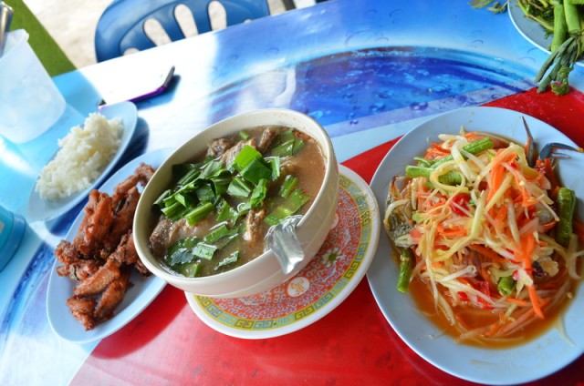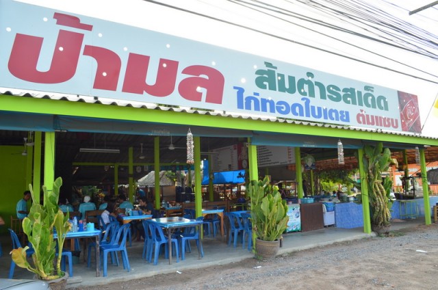 ร้านส้มตำป้ามล ตั้งอยู่ใกล้ๆกับโรงแรมแอมบาสเดอร์ครับ ถ้ามาจากกรุงเทพฯ ก็จะต้องกลับรถที่หน้าโรงแรมแอมบาสเดอร์ครับ แล้วขับต่อมาอีกนิด แต่ถ้ามาจากสัตหีบให้ขับเลยโรงแรมแอมบาสเดอร์แล้วชิดซ้ายไว้ครับร้านส้มตำป้ามล เป็นร้านอาหารข้างทางขนาดใหญ่ วันที่เจ้าของบล็อกไปถุงคนจะเยอะก็สามารถจอดรถข้างทางหน้าร้านได้นะครับ ตัวร้านเปิดโล่ง แต่อากาศไม่ร้อนมากครับ ขนาดเจ้าของบล็อกไปตอนกลางวันแดดเปรี้ยงยังสามารถนั่งได้เรื่อยๆ ไม่ร้อนมากครับเมนูของร้านนี้ก็เป็นเมนูอาหารอีสานทั่วๆไปครับส้มตำข้าวโพด ราคา 50 บาทจานนี้รสชาติส้มตำก็โอเคนะครับ แต่ข้าวโพดมีกลิ่นนิดๆ ตำไข่เค็ม ราคา 60 บาทเมนูนี้รสชาติไม่จัดมากครับ แต่ครบรสครับ เผ็ด เปรี้ยว เค็มๆกับหวานๆ เหมาะสำหรับคนที่กินเผ็ดไม่เก่งครับ ลาบหมู ราคา 60 บาท จานนี้รสจะจัดขึ้นมานิดนึงครับ แต่ไม่ถึงกับเผ็ด ออกเปรี้ยวนำมากกว่า - เจ้าของบล็อกชอบรสนี้มากเลยครับไก่ทอดใบเตย ราคา 70 บาท เมนูนี้เป็นเมนูขึ้นชื่อของร้านส้มตำป้ามลครับ แต่เจ้าของบล็อกว่ามันเค็มไปนิด อาจจะเป็นเพราะทอดมาแบบเหลืองจัดๆ ก็ได้นะครับเมนูสุดท้าย ต้มแซ่บกระดูกอ่อน ราคา 70 บาทเมนูเด็ดขาดมากครับ เผ็ด เปรี้ยว สะใจมากๆ ยิ่งอากาศร้อนๆ เหงื่อออก แต่มันหยุดซดน้ำไม่ได้จริงๆครับ อิอิอิร้านส้มตำป้ามล จอมเทียน เป็นร้านอาหารอีสานที่รสชาติเด็ดขาดมาก ถ้าผ่านไปผ่านมาแถวนี้ก็อย่าลืมแวะนะคราบ…查看更多